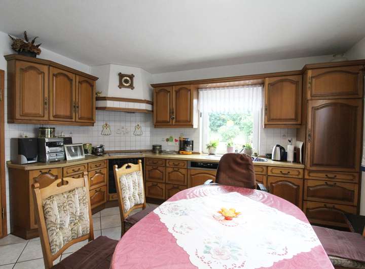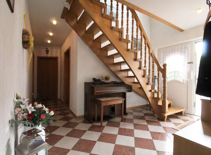 Bereits die einladende Eingangsdiele dieses eleganten, im Jahr 1995 erbaute Einfamilien-hauses, zeugt mit seinen ca. 13 m² von der Großzügigkeit dieses Objekts, das insgesamt über eine Wohnfläche von ca. 155 m² plus zusätzlichen ca. 28 m² Grundfläche des Wintergartens verfügt.