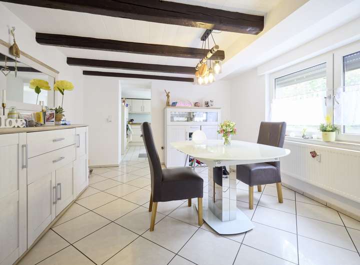 Dieses sanierte Zweifamilienhaus liegt am Ende einer ruhigen Sackgasse in einem beliebten Ortsteil von Erwitte. Dank der ruhigen, Lage genießen Kinder ein Höchstmaß an Sicherheit und können vor der Haustür spielen und toben. Im Jahre 2002 wurde dieses Haus durch einen Anbau zu einem Zweifamilienhaus umgebaut. Mit einem exzellenten Gespür für den aktuellen Zeitgeist ist über die Jahre der Sanierung ein Wohnhaus entstanden, was moderner ist, als das Baujahr vermuten lässt. Die beiden Wohneinheiten sind von einander getrennt und verfügen über einen separaten Hauseingang. Die Versorgungsleitung sind ebenfalls getrennt, sodass eine Verbrauchs-abrechnung problemlos möglich ist. Die erste Wohnung verfügt über eine Wohnfläche von ca. 89 m² aufgeteilt auf zwei Etagen. Die geschickte Aufteilung der Räume schafft ein gemütliches Wohn-ambiente, trotz übersichtlicher Wohnfläche. Der Eingangsbereich ist mit hochwertigen Fliesen ausgestattet und ebnet den Weg zum Wohnbereich. Neben den neuen Doppelverglasten Fenstern ist hier ein hochwertiger Holzboden verlegt worden, der sich auch in anderen Räumen wiederfindet. Die gepflegte Einbauküche mit einer Sitzgelegenheit komplettiert das Raumangebot im Erdgeschoss. Im Obergeschoss befinden sich zwei großzügige Schlafzimmer und eine kompakte Ankleide. Das Badezimmer befindet sich in unmittelbarer Nähe zu den Schlafzimmern und schafft somit kurze Wege. Eine großzügige bodentiefe Dusche und ein durchgängiger Fliesenspiegel unterstreichen die modernen und hochwertigen Charakter dieses Hauses.
