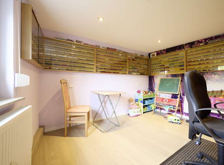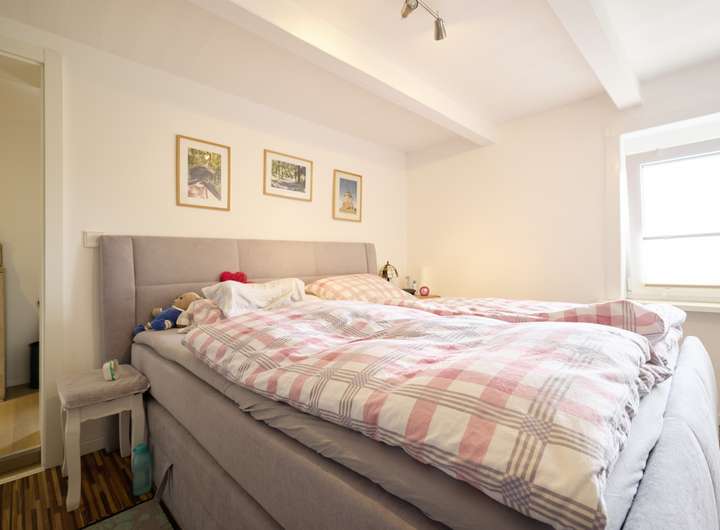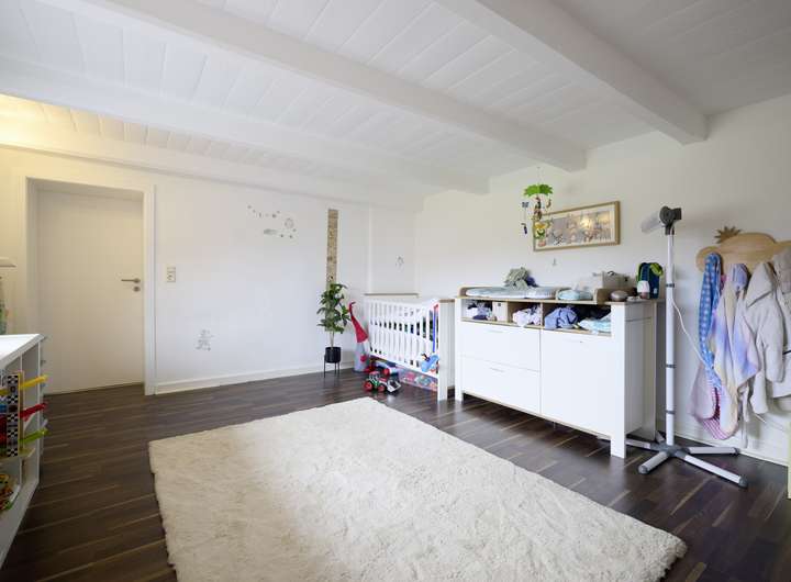 Über den Eingangsbereich gelangt man direkt in den Essbereich des Hauses. Die Küche verbindet den Essbereich mit dem Arbeitszimmer und bildet somit einen fließenden Übergang der beiden größten Räume. Die frei liegenden Deckenbalken im Essbereich unter-streichen nochmals den geschichtsträchtigen Charakter des Hauses und schafft einen gekonnten Spagat zwischen modernen und vergangenen. Eine Gäste-Toilette befindet sich ebenfalls in unmittelbarer Nähe und schafft für Gäste kurze Wege, ohne durch die Privaträume zu gehen. Die bodentiefen Türen im Arbeitszimmer, welches auch als weiteres Schlafzimmer genutzt werden könne, verwöhnen diesen Raum mit ausreichend Sonnenlicht und schaffen einen schönen Blick in den eigenen Garten. Ein separater Hauswirtschaftsraum ist ebenfalls an das Arbeitszimmer angeschlossen, in diesem kann eine Waschmaschine und ein Trockner bequem untergebracht werden. Ebenso wie Vorräte. Das Wohnzimmer ist anders als die übrigen Räume mit einem angenehmen Teppichboden ausgestattet und schafft dank der guten Größe viele Möglichkeiten der Gestaltung. Im Obergeschoss befinden sich zwei Schlafzimmer und ein Büro welches ebenfalls als Schlafraum genutzt werden kann. Das Badezimmer ist mit einer Duschwanne ausgestattet und ist mit einer Tür vom Elternschlafzimmer getrennt. Somit bildet das Badezimmer im Obergeschoss eine Verbindung zu zwei Schlafzimmern. Das Dachgeschoss komplettiert das Raumangebot und bietet ausreichend Stauraum, dies macht einen zusätzlichen Keller überflüssig. Beide Wohnung sind zurzeit langfristig und gewinnbringend vermietet.