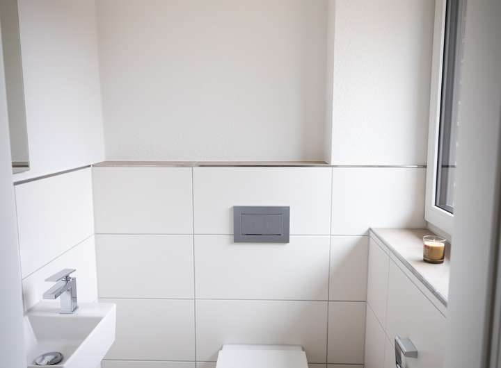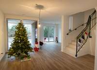 Im Erdgeschoss befindet sich die Küche mit großem Ess- und Wohnbereich mit direktem Zugang zur Terrasse und Garten. Das Gäste WC und der Hauswirtschaftsraum dürfen nicht fehlen.