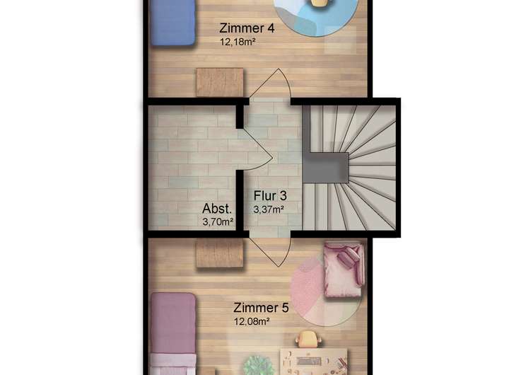 Im Dachgeschoss sind zwei großzügige Zimmer um Ihren Wohntraum zu vollenden. Ob Homeoffice, Kinderzimmer, Gästezimmer oder Fitnessraum. Sie haben hier Ihren Freiraum. Zusätzlich befindet sich auch hier noch ein komfortabler Abstellraum.