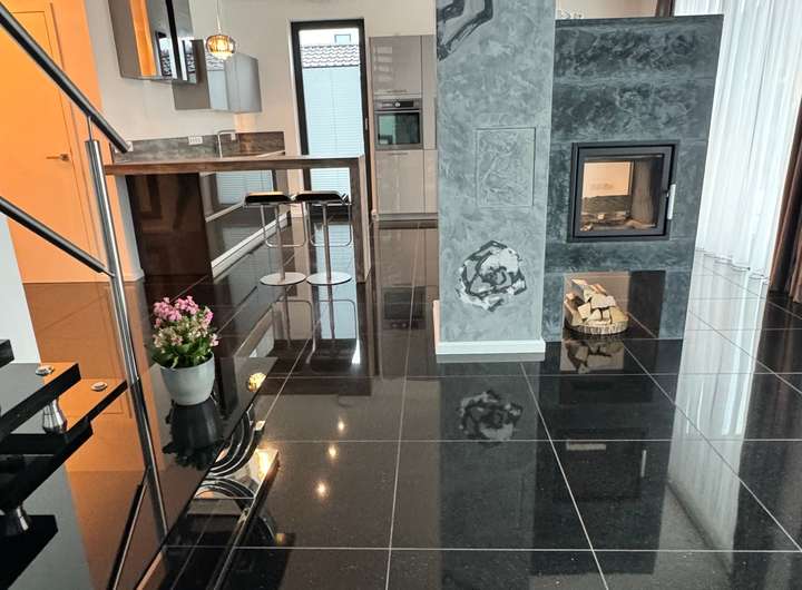 • Natursteinböden im Erdgeschoss, Parkett im Obergeschoss