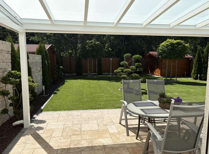 - Terrassenüberdachung mit Unterdach-. Und senkrecht Markise