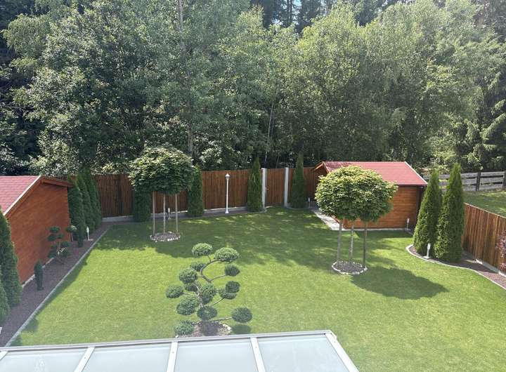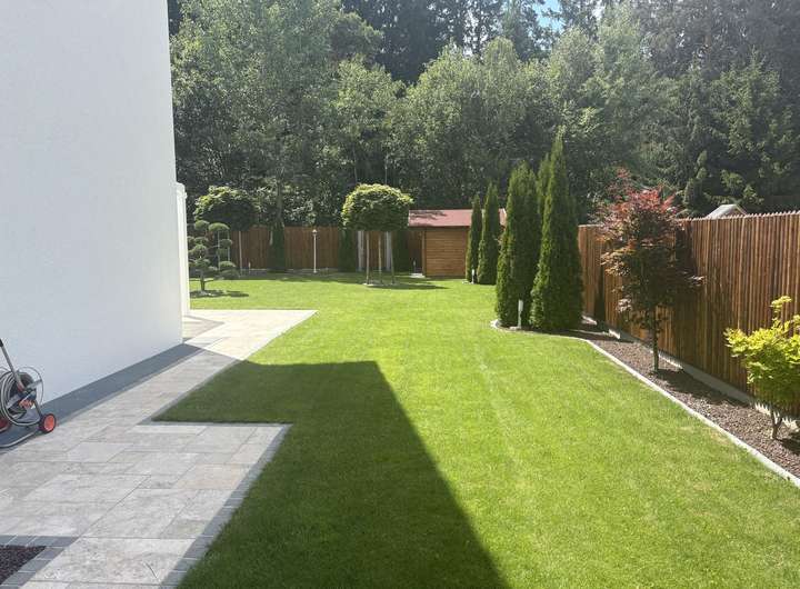 Der traumhaft angelegte Garten, mit Bonsai und Thujen, sowie mit direktem Zugang zum Wald.