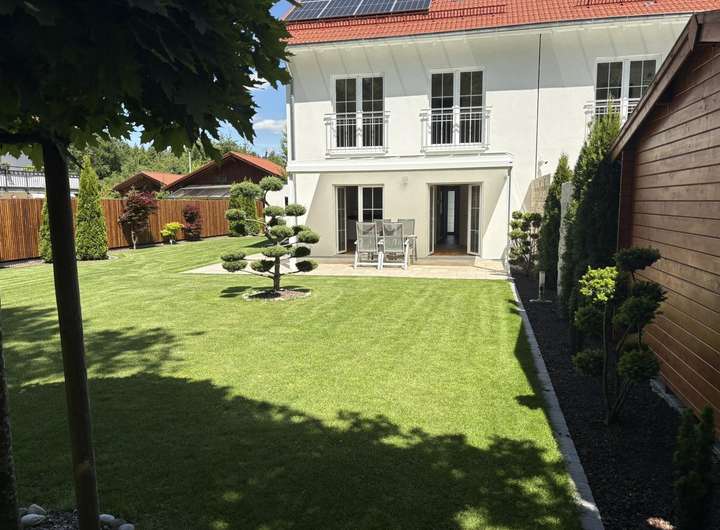 Erst vor 2 Jahren fertiggestellte Plus-Energie Doppelhaushälfte. Das Haus besticht durch eine luxuriöse Innenausstattung und einer traumhaft gestalteten Außenanlage. Zu dem Objekt zählen fünf schöne Zimmer, zwei Badezimmer, zwei Abstellkammern und ein separates Gäste-WC. Die Immobilie ist komplett von allen Seiten im Erdgeschoss barrierefrei zugängig. Das 2022 erbaute Objekt wird natürlich per Wärmepumpe beheizt.