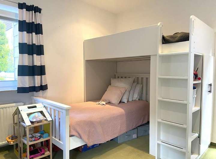 Ursprünglich erbaut in 1980, wurde das Haus in 2015 umfangreich und geschmackvoll modernisiert. Der schön geschnittene Grundriss besteht im Erdgeschoss aus einer Wohnküche, einem lichtdurchfluteten Wohnbereich mit Kamin und einem Gäste-WC. Im Obergeschoss befinden sich drei Zimmer, eines davon mit Südbalkon, sowie ein großes Bad mit Badewanne,