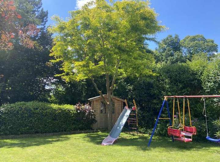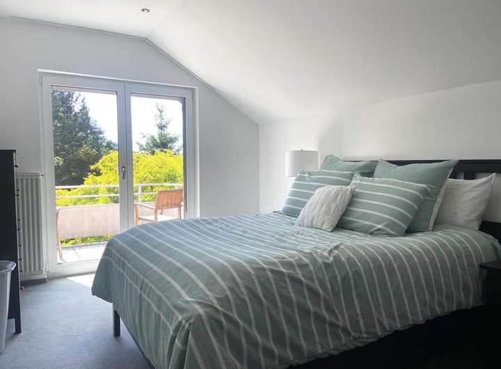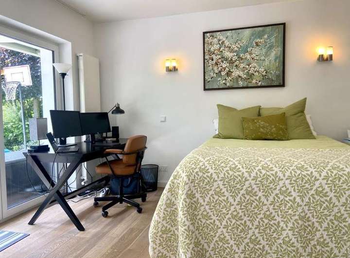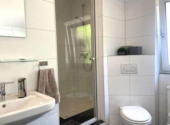 Dusche und Doppelwaschbecken. Zusätzlich stehen im Gartengeschoss zwei Zimmer mit eigener Terrasse, ein Gästebad und ein großer Keller zur Verfügung. Der liebevoll angelegte, geschützte Garten mit herrlichem Baumbestand ist ein Paradies für Groß und Klein. Hier kann man sehr privat die Sonne genießen, spielen und relaxen. Zwei Autos finden in der Garage und auf dem Stellplatz vor dem Haus Platz. Zusätzlich zu den Nebenkosten ist vom Mieter ein Vertrag für den Strom- und Gasverbrauch abzuschließen. Eine Mindestmietzeit von 24 Monaten ist erwünscht.