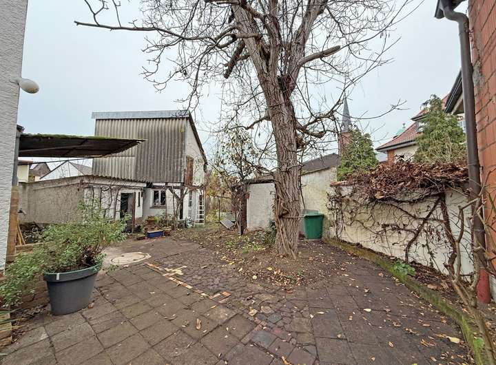 Der kleine Hof mit Terrasse und einem schönen Walnussbaum lädt zum Entspannen und Spielen ein. Ein besonderes Highlight ist der Garten mit verschiedenen Obstbäumen, die jedes Jahr eine reiche Ernte versprechen. Zwei praktische Schuppen bieten zusätzlichen Stauraum für Gartenwerkzeuge oder Fahrräder.