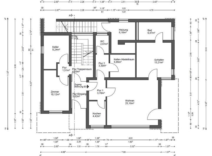 Eine Wohnung ca. 190 qm (6 Zimmer) Eine Wohnung ca. 67 qm (2 Zimmer) Doppelgarage - Breite 5,5 m, Tiefe 6,5 m Grundstück 727 qm