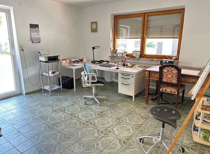 EG (ca 65 m2): 3 Büroräume, WC, Heizraum, Flur, Fußbodenheizung