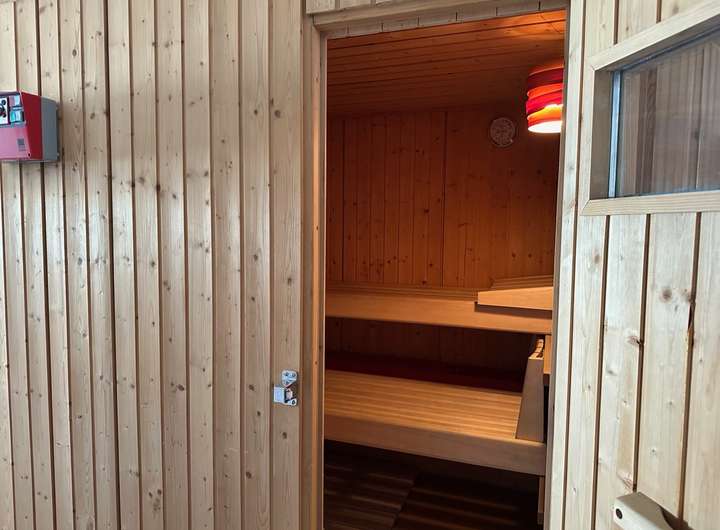 DG (ca 115 m2): Großes Studio, 2 Schlafzimmer, Sauna, Badezimmer m. Dusche, WC u. Waschbecken, gr. Lagerraum, Flur