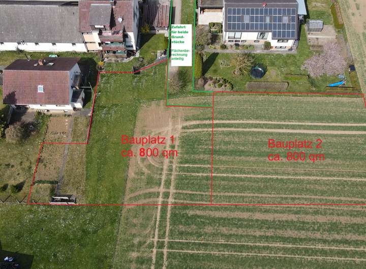 Es werden insgesamt drei Bauplätze angeboten: Flurstück 199/ 5 mit 600 qm und Flurstück 199 mit einer Fläche von zwei Mal 800 qm. Eine ideale Grundstücksgröße für Ihr Traumhaus. Der Preis richtet sich nach dem tatsächlichen Grundstücksanteil. Grundlage ist der qm-Preis von 400 Euro.