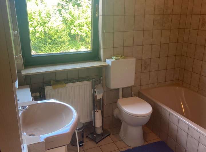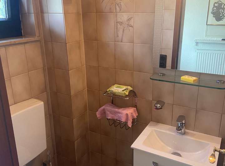 Das Haus verfügt über ein Gäste- WC, ein Bad mit Tageslicht, Wanne und Dusche und eine Dusche im Keller neben der Sauna im Hobbyraum.