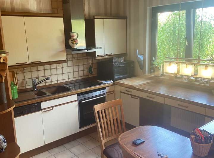 Ein besonderes Highlight ist der gemauerte Kaminofen im offenen Wohn-Essbereich ( auf aktuellem Stand seit 2020 ) neben der Küche ( die Einbauküche mit E-Geräte sind im Kaufpreis enthalten.