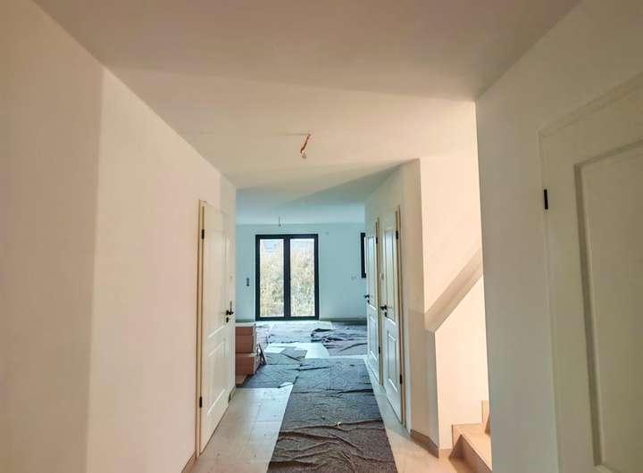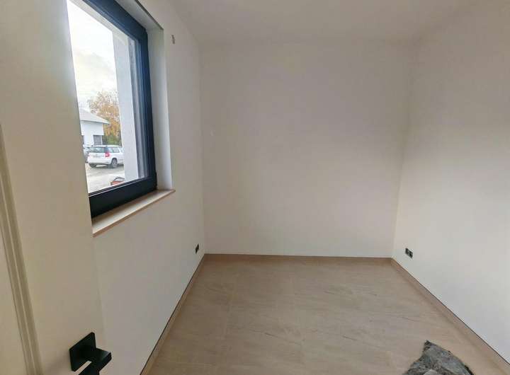 Besonders hervorzuheben sind die modernen Fenster: Es wurde überwiegend auf bodentiefe, dreifach verglaste Fenster gesetzt, um den Wohnkomfort durch mehr Tageslicht zu steigern. Alle Fenster sind mit elektrischen Jalousien ausgestattet und in elegantem Schwarz (innen und außen) ausgeführt. Die Hauseingangstür ist in Aluminium-Kunststoff, die Nebeneingangstür in robustem Kunststoff, ebenfalls in Schwarz gefertigt.