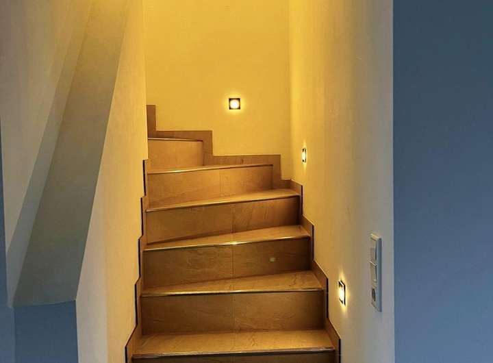 Die Haustechnik ist modern und zukunftssicher: Eine Photovoltaikanlage mit Batteriespeicher, eine Luft-Wasser-Wärmepumpe der Marke Vaillant sowie ein intelligentes Heimenergiemanagement bieten höchste Energieeffizienz. Im gesamten Haus sind ausreichend Steckdosen und LAN-Anschlüsse vorhanden, eine stilvolle Treppenbeleuchtung und eine Freisprechanlage mit Klingel sind ebenfalls installiert. Zudem wurde die Vorbereitung für die spätere Installation einer Wallbox berücksichtigt.