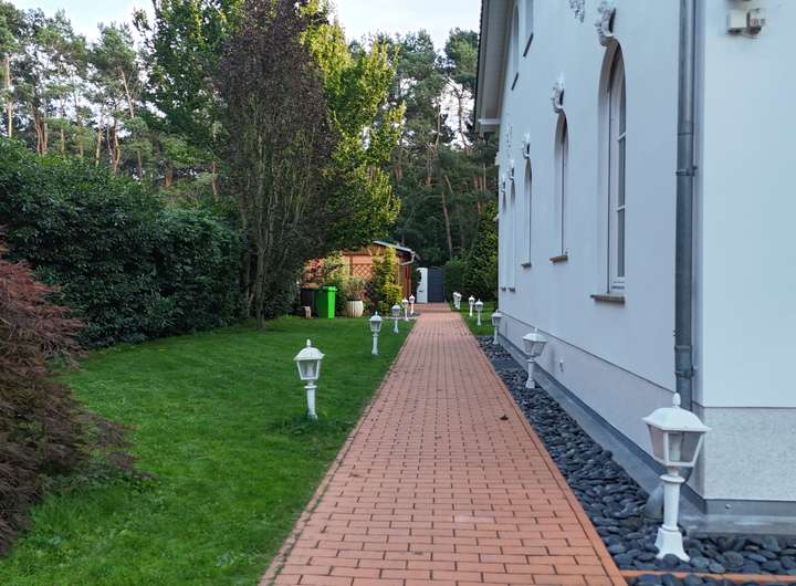 Das Ortsbild ist geprägt von großzügigen Grundstücken, eindrucksvollen Villenarchitekturen und gepflegten Parkanlagen. Spazier- und Radwege führen direkt in die unberührte Natur des angrenzenden Landschaftsschutzgebietes, während die Nähe zu internationalen Verkehrsadern und dem Flughafen BER auch für Vielreisende perfekte Erreichbarkeit gewährleistet.