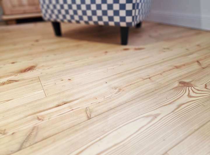 Böden: edler belgischer Blaustein im EG, Echtholzparkett im Schlafzimmer