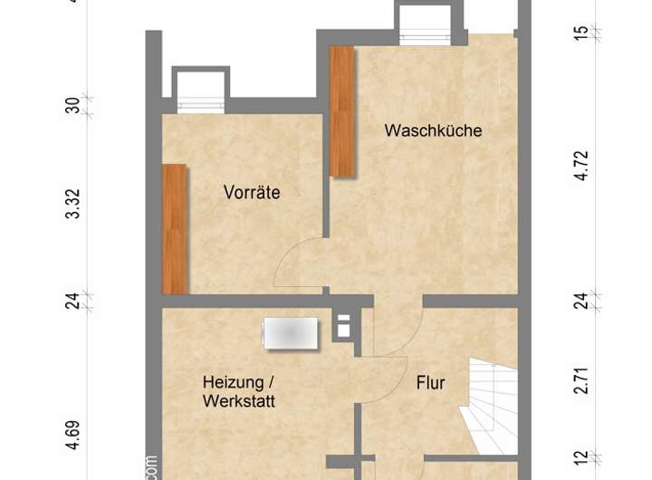Der Keller bietet ca. 52 m² Nutzfläche, aufgeteilt auf Vorratsräume und einen Waschkeller.