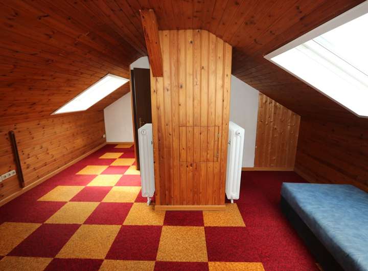 Das Obergeschoss beherbergt drei gut geschnittene Schlafzimmer mit ca. 10 m², ca. 12 m² und ca. 16 m². Eines der Zimmer verfügt über einen Zugang zum Balkon mit Blick in den Garten. Ein Badezimmer mit Badewanne steht ebenfalls auf dieser Etage zur Verfügung.