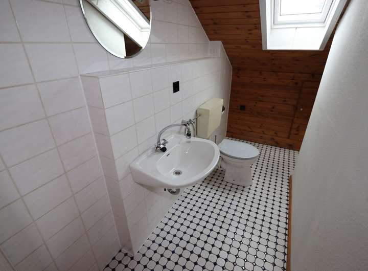 Im Dachgeschoss befindet sich eine offen gestaltete, hochwertige Nutzfläche von ca. 20 m², die über eine Holztreppe erreichbar ist. Hier wurde zusätzlich ein separates WC integriert, wodurch sich das Dachgeschoss als Arbeits- oder Gästebereich eignet.