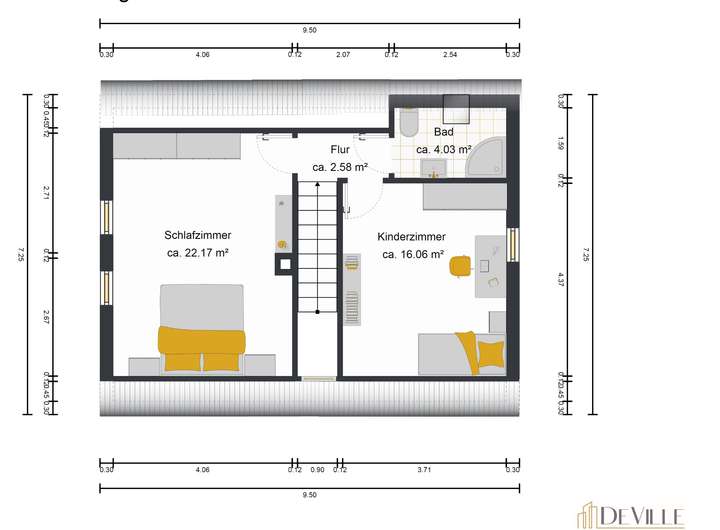 Im Obergeschoß befinden sich 2 Schlafzimmer sowie ein Badezimmer.