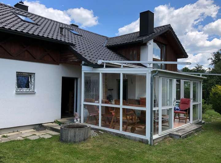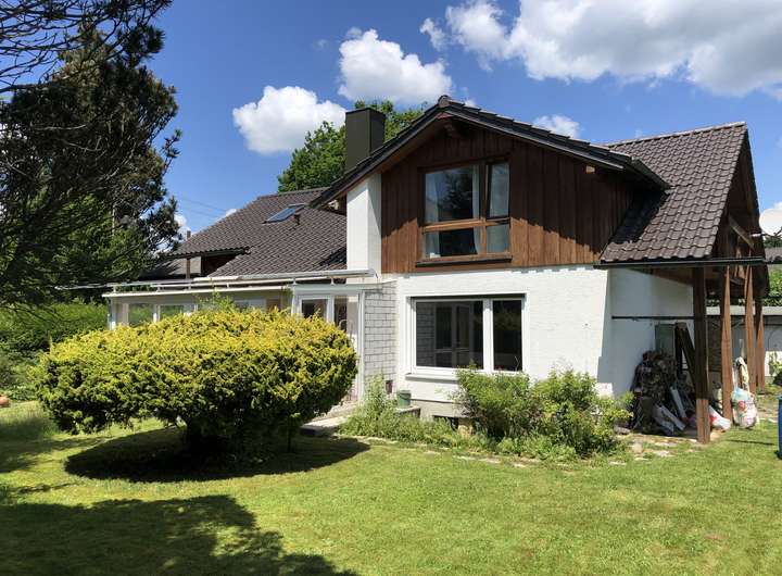 Das Wohnhaus wurde ca. 1960 in massiver Bauweise errichtet und bietet ca. 135 m² Wohnfläche (inkl. ausgebautem Dachgeschoss, exkl. Wintergarten) sowie etwa 130 m² Nutzfläche (Keller, Garage, Wintergarten).