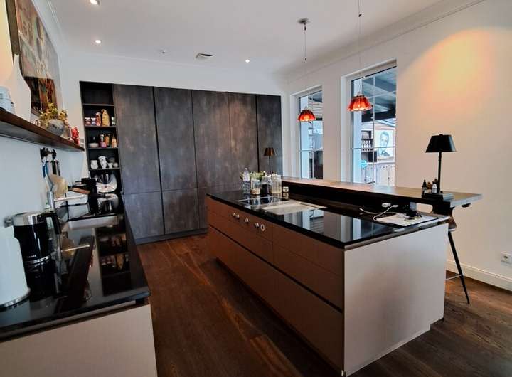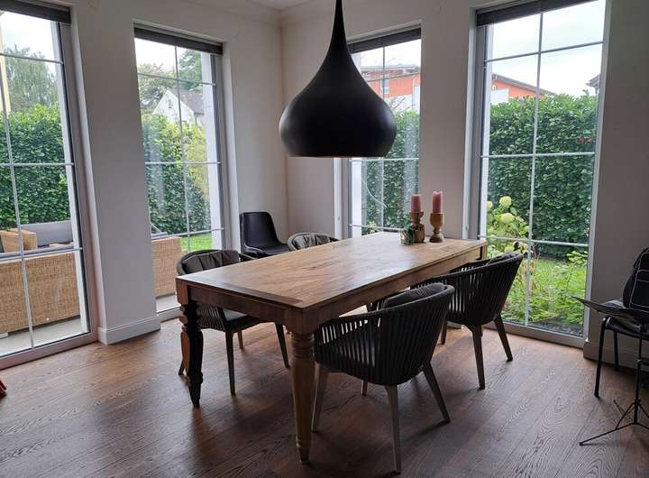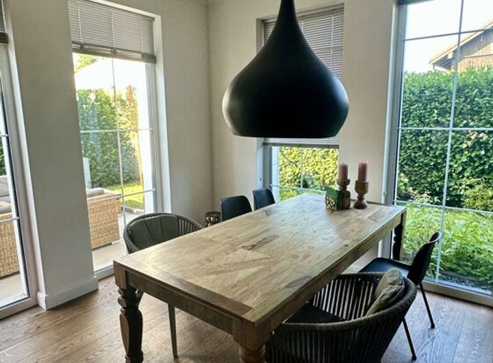 Die hochwertige Einbauküche lädt zu gemeinsamen Kochabenden und ausgiebigem Genießen ein. Dank der elektrischen Jalousien genießen Sie stets die optimale Lichtstimmung im gesamten Haus. Eine großzügige Terrasse ergänzt das Raumangebot und eröffnet Ihnen wunderbare Möglichkeiten für entspannende Momente im Freien.