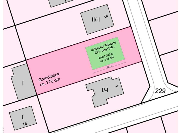 Mögliche Wohnfläche bei Neubau ca. 170-200 qm