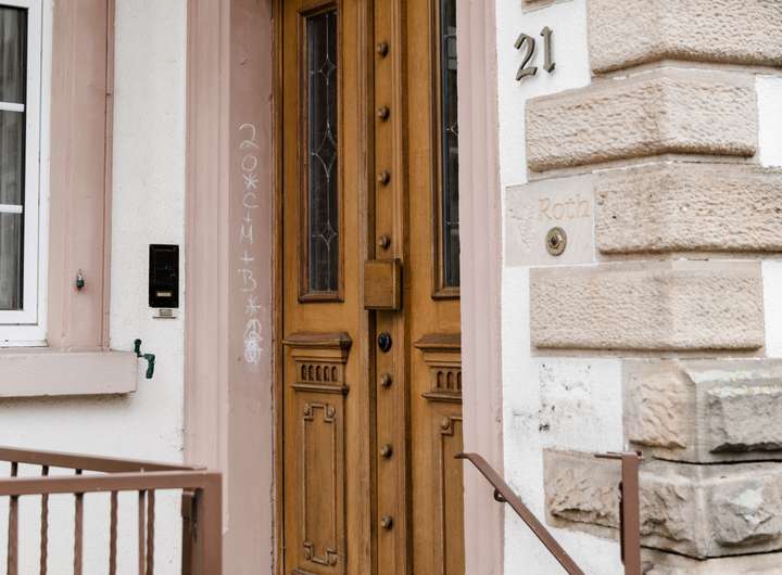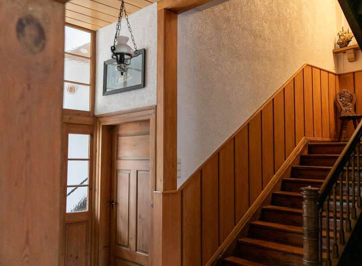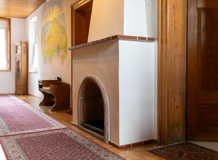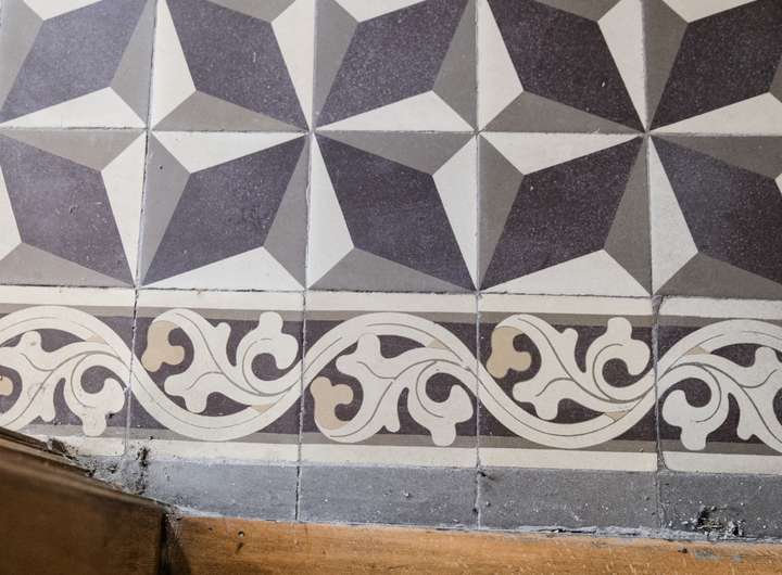 - Historische Bodenfliesen im Eingangs- und Flurbereich.