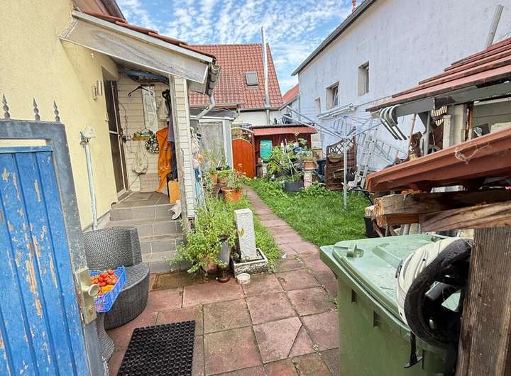 Ein besonderes Merkmal: Der Zugang zum hinteren Haus erfolgt über den Garten dieser Immobilie. Der Nachbar nutzt hierfür ein "Wegerecht", eine charmante Lösung, die beiden Häusern ihre Privatsphäre belässt und den nachbarschaftlichen Charakter unterstreicht.