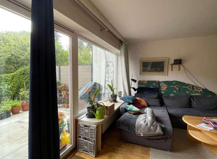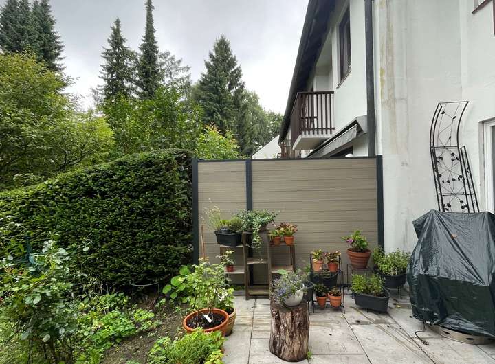 Über den direkten Zugang vom Wohnbereich gelangen Sie auf die Terrasse und in den großzügigen Südwest-Garten, wo Sie auch noch die Sonnenstrahlen in den Abendstunden genießen können.
