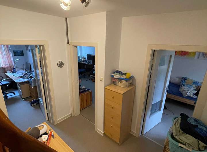 Die zweite Ebene ist die Ruheebene. Hier finden Sie bzw. Ihre Kinder oder Partner ihren persönlichen Bereich zum Relaxen und Entspannen. Neben zwei großen Schlaf-, Arbeits- oder Kinderzimmern und einem kleineren Zimmer finden Sie auf dieser Etage ein Vollbad mit Badewanne und Fenster.