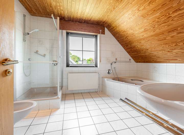 - Bad mit Fenster, Dusche und Badewanne