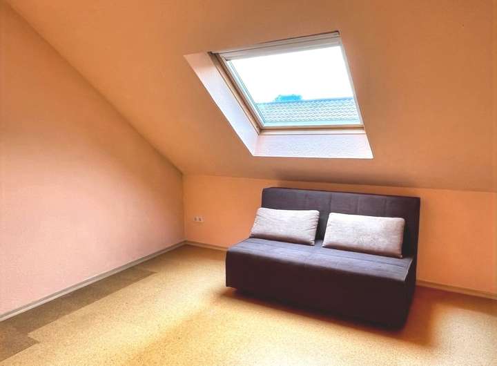 Im Erdgeschoss befindet sich ein Wohnzimmer, ein Schlafzimmer, die Küche, ein Duschbad, sowie ein kleiner Abstellraum unter der Treppe. Das Dachgeschoss verfügt über ein weiteres Zimmer zur individuellen Nutzung und ein 2. Badezimmer mit Badewanne, Dusche und WC. Ein großer Abstellraum, in dem auch die Heizungstherme untergebracht ist, bietet viel Staufläche.