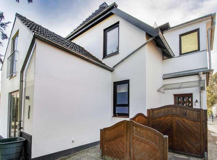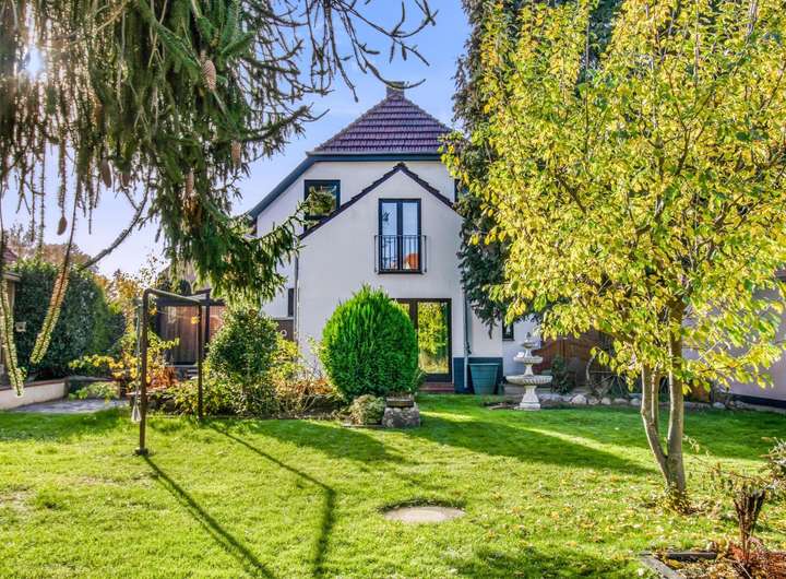Das 1912 fertiggestellte Haus im bürgerlichen Landhausstil steht auf einem 724 qm großen Grundstück an der Rönnebecker Straße. Es verfügt mit über 200 qm Wohn- u. Nutzfläche über zwei abgeschlossene Wohnungen, einen Gästeanbau, Kellerräume, zwei Garagen u. eine Werkstatt. Authentische Ausstattungsmerkmale wie erhaltene Profilholztüren, Holzdielen, eine Schiebetür zwischen den unteren Wohnzimmern sowie Wand- u. Fußbodenfliesen aus verschiedenen Epochen machen den besonderen Charme des Objekts aus.