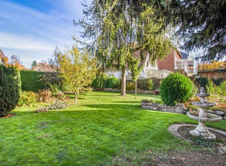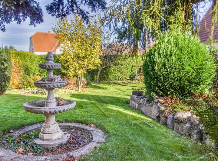 Garten: Der ursprüngliche Wirtschaftsgarten hat sich im Laufe der Zeit zu einem schönen Erholungsgarten entwickelt. Obstbäume, Koniferen, Staudenbeete u. ein großer Rasen bestimmen heute das Bild. Der Vorgarten verleiht dem Haus einen noblen Charakter.