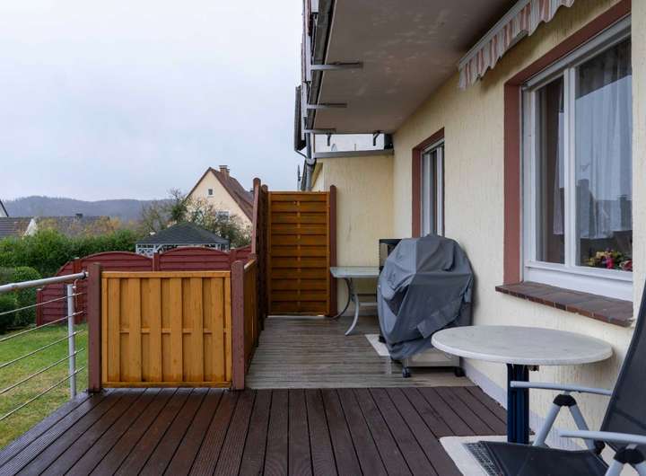 Die ca. 76,93 m² umfassende Wohnung überzeugt mit einer ähnlichen Raumaufteilung und einem zusätzlichen Plus: Ein wunderschöner Balkon eröffnet Ihnen einen herrlichen Blick in die grüne Umgebung und lädt zum Verweilen im Freien ein.