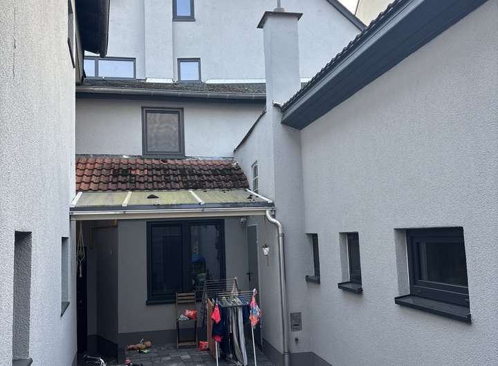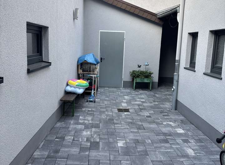 Das Grundstück hat einen von außen nicht einsehbaren Innenhof mit ca. 30m2 Fläche mit großem Zugang von der Garage aus und dem Wohngebäude. Es gibt auch noch ein kleines Lagergebäude mit ca. 18m2.