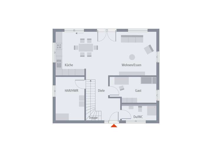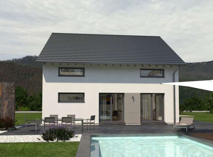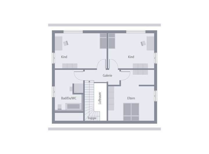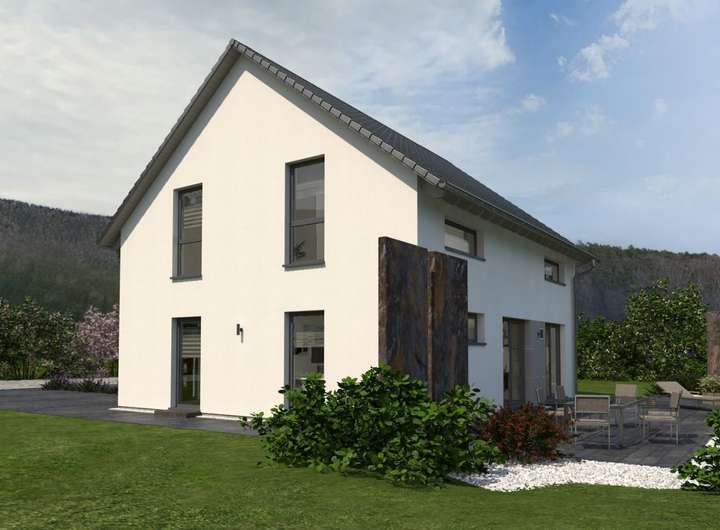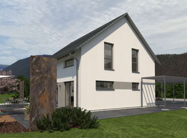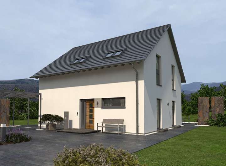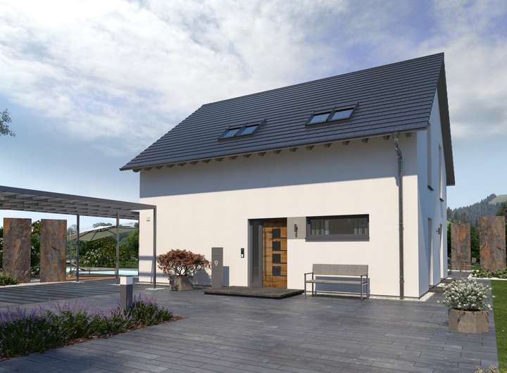 Schlichte Eleganz trifft auf Wohnlichkeit: Unser Design 14 ist die perfekte Lösung für diejenigen, die ein zeitloses Design bevorzugen und die dennoch im Hinblick auf Wohnkomfort und Ausstattung keine Abstriche machen möchten. Das Einfamilienhaus erstreckt sich über eine Fläche von rund 158 m² über zwei Etagen und bietet unter dem Satteldach ausreichend Raum für Singles, Paare und Familien. Im Erdgeschoss befindet sich der lichtdurchflutete Wohn-Ess-Koch-Bereich, der durch große Fensterfronten und den unmittelbaren Zugang zu Terrasse und Garten besonders einladend wirkt. Außerdem Parterre: Hauswirtschaftsraum, Gäste-WC und ein weiteres Zimmer, das für Gäste oder als Büro genutzt werden kann. Über die Treppe im offen gestalteten Dielenbereich führt der Weg ins Obergeschoss, wo sich zugleich die Rückzugsorte der Hausherren befinden. Neben einem Elternschlafzimmer sind hier zwei nahezu identisch geschnittene Kinderzimmer sowie ein großes Tageslichtbad mit Wanne, Dusche und WC.