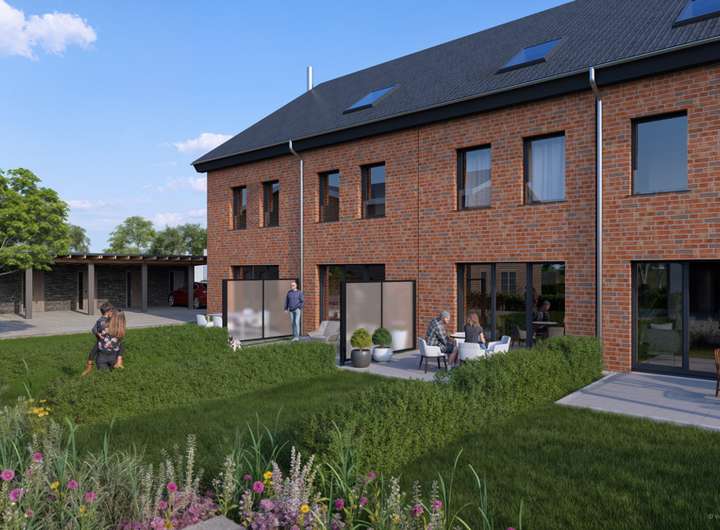 Jedes Haus besitzt eine eigene Terrasse. Ein Carport mit Vorbereitung für E-Mobilität - teils mit integriertem Abstellraum für Gartengeräte und Fahrräder - muss separat erworben werden. Für eine effiziente Wärmeversorgung sorgt zentrale Energieversorgungsanlage auf Basis erneuerbarer Rohstoffe zzgl. einer PV-Anlage mit Batteriespeicher pro Haus, wodurch die Eigentümer eine Stromersparnis von ca. 40–50 % erzielen können.