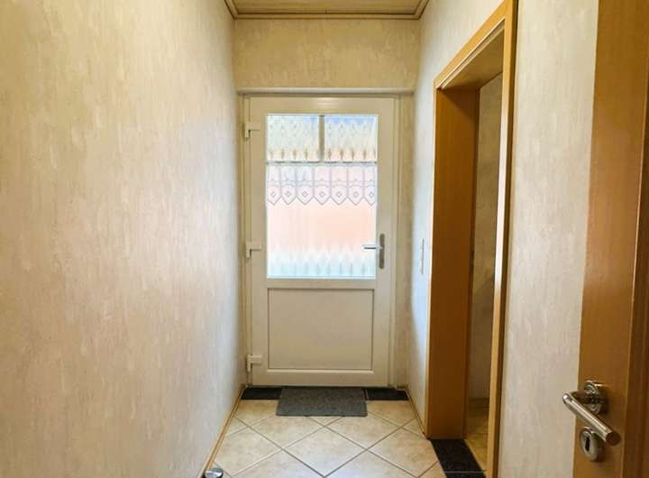 Den Hauswirtschaftsraum erreicht man auch im EG durch einen zweiten kleinen Flur, der vom Eingangsbereich des Hauses in Richtung Carport abgeht. Hier gibt es noch eine weitere Außentür.
