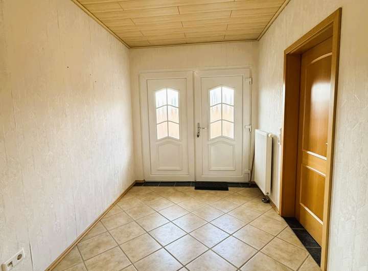 Wir starten unsere Haustour im großzügigen Flur. Platz für eine Garderobe oder einen Schuhschrank ist hier gegeben.