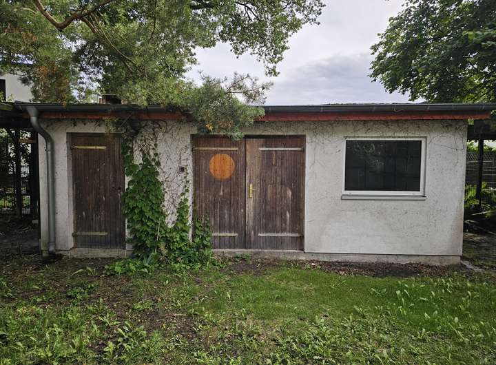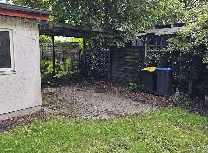 Das Nebengebäude mit ca. 20 m² ist in zwei Räume aufgeteilt und eignet sich ideal als Werkstatt, Lager oder Hobbyraum. Daneben befindet sich ein Stellplatz mit Pergola.