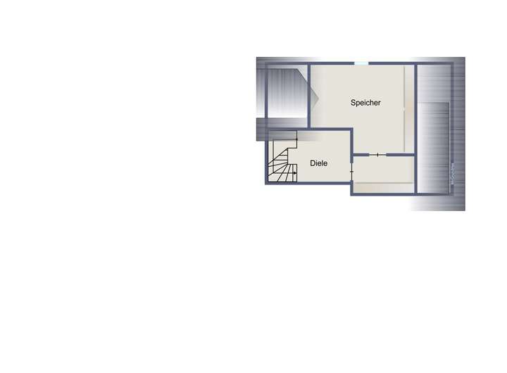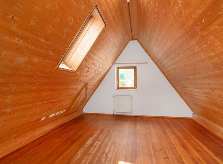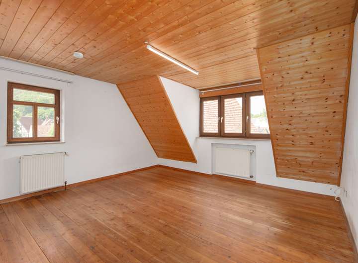 Das darüberliegende Dachgeschoss beherbergt einen ausgebauten Speicher, der sich her-