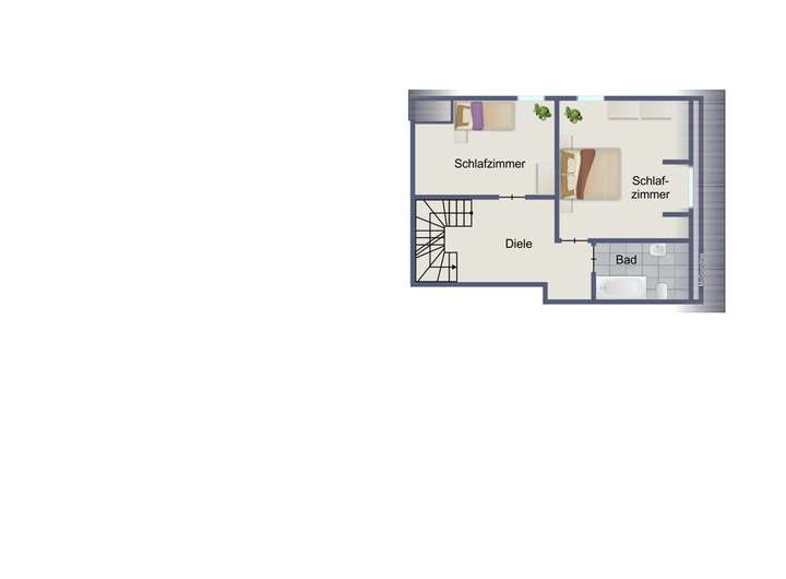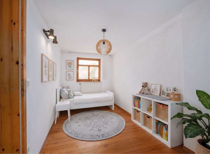 Im Obergeschoss befinden sich zwei weitere Schlafzimmer sowie ein helles Tageslichtbad.