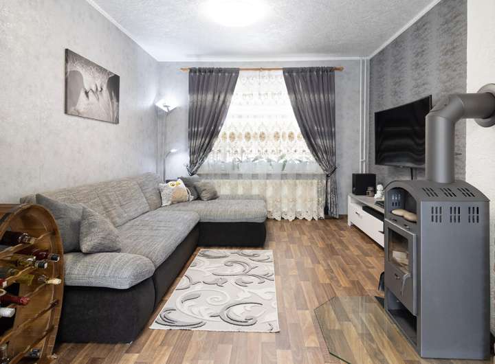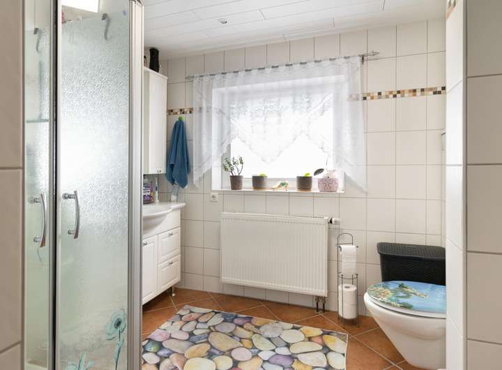 120 m² Wohnfläche, verteilt auf vier Zimmer, ist sehr gepflegt. Im Erdgeschoss befinden sich ein Wohnzimmer mit Kaminofen, ein weiteres Zimmer sowie ein Duschbad. Die geräumige Küche bietet ausreichend Platz für einen Esstisch und hat Zugang zur überdachten Terrasse. Die Räume sind mit Laminat bzw. Fliesen belegt. Über einen kleinen Flur gelangen Sie ins Obergeschoss, wo sich ein Schlafzimmer, ein kleines Zimmer und ein weiteres Duschbad befinden. Die Immobilie ist voll unterkellert und wird mit Gas beheizt. Die Terrasse ist überdacht, so dass Sie hier entspannen können. Kindergärten, eine Grundschule und die Einkaufsstraße Schleswigs sind fußläufig erreichbar. Ein PKW-Stellplatz ist ebenfalls vorhanden.