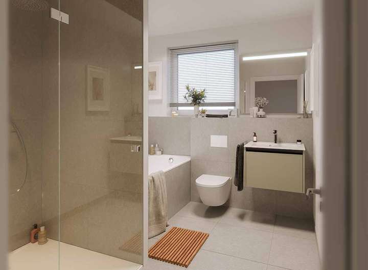 Die durchdachte, moderne Ausstattung vereint höchsten Wohnkomfort mit wirtschaftlichen Vorteilen. Energiesparende Fußbodenheizung und bodentiefe Fenster schaffen eine lichtdurchflutete, behagliche Atmosphäre und reduzieren gleichzeitig die Nebenkosten erheblich. Hochwertige Sanitärobjekte und individualisierbare Ausstattungsoptionen erfüllen anspruchsvolle Wohnwünsche. Die Bauweise nach KfW 55-Standards reduziert Energiekosten nachhaltig, während die barrierefreie Gestaltung und die moderne Tiefgarage langfristigen Wohnkomfort für alle Lebensphasen sicherstellen. Für Kapitalanleger schaffen diese durchdachten Details maximalen Vermietungserfolg und zusätzliche Einnahmequellen.