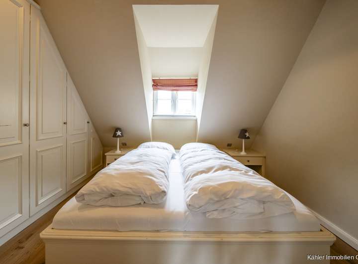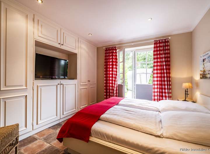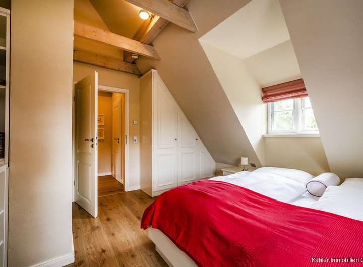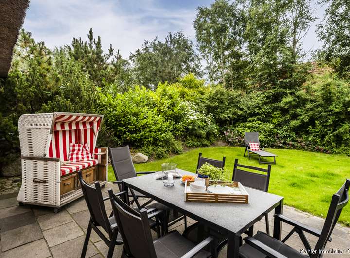 Das Haus verbindet nordische Architektur mit modernem Komfort und überzeugt durch eine gelungene Raumaufteilung, die den Charakter eines eigenständigen Hauses noch einmal unterstreicht. Schon der Außenbereich lädt mit seiner geschützten Terrasse, einem Strandkorb und einer stilvollen Sitzecke zum Verweilen ein, ob bei Kaffee in der Morgensonne oder einem Glas Wein am Abend. Die natürliche Bepflanzung schafft zusätzliche Geborgenheit und Privatsphäre.