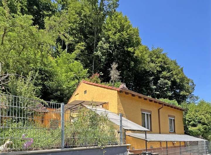 Aktuell befindet sich auf dem Grundstück ein Wohnhaus mit Baujahr um 1890 sowie ein kleiner Schuppen in der oberen Grundstücksecke. Laut Aussage des Eigentümers hat ein Gutachter ihm gegenüber bestätigt, dass das Haus aufgrund erheblicher Nässeschäden nicht sanierungsfähig ist und lediglich ein Abriss in Frage kommt. Entsprechend richtet sich dieses Angebot an Interessenten, die den Ort für einen Neubau in bevorzugter Lage nutzen möchten.